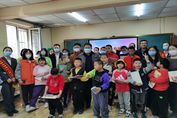 工作人员和辖区党员等人来到特殊教育学校南湖小学与孩子们一起参加了升旗仪式,学校教师在国旗下进行了爱国教育讲话,工作人员和志愿者与孩子们一起在学校操场做游戏。活动结束后,大家来到班级为孩子们送去书包、图书、画册等,带领孩子们感受到图书的魅力,用画笔画出心中的太空。