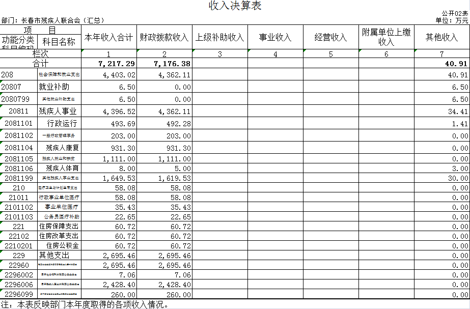 2017年度长春市残疾人联合会(汇总)部门决算
