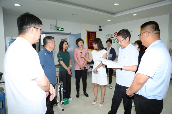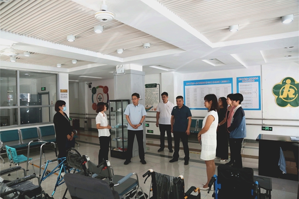 8月9日下午,省残联康复部部长董爽一行到朝阳区调研指导残疾人康复工作。市残联党组成员张英君、朝阳区残联理事长崔东谊及相关工作人员陪同。