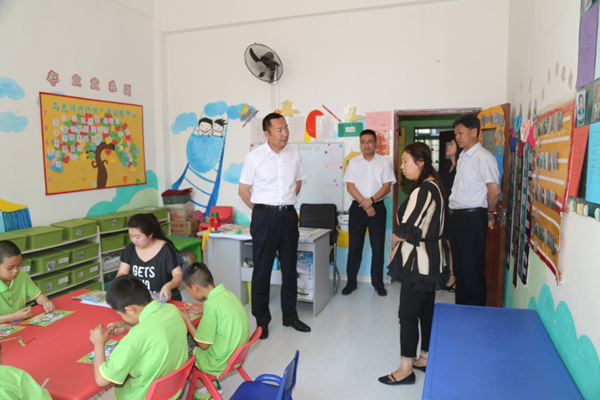 图为区政府领导在育龙特殊儿童语言康复培训学校调研