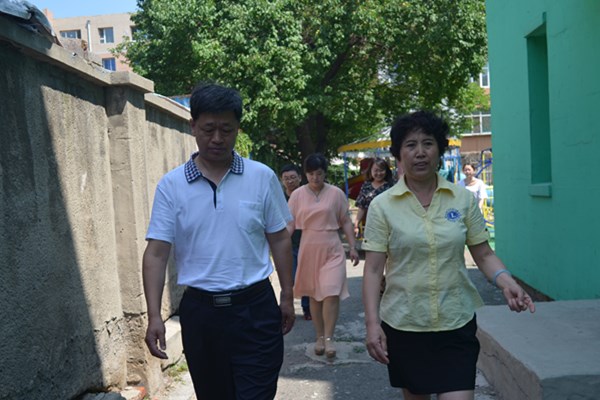 图为宽城区残联理事长程光远、副理事长白亚兰在育龙学校调研