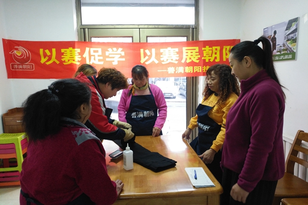 为了贯彻精准扶贫、助残帮困的理念,更好的为残疾人就业、创业提供帮助,让学员对自己的学习成果进行检验,也为了对新学员或即将加入善满朝阳示范园的残障朋友进行鼓励。1月10日,朝阳区善满朝阳残障人创孵示范园举办了干洗、烘焙、茶艺三个项目的技能竞赛。参赛选手完成作品后由现场评委和指导老师最后评分,最终评选出一、二、三等奖,并由培训老师颁发荣誉证书和奖金。