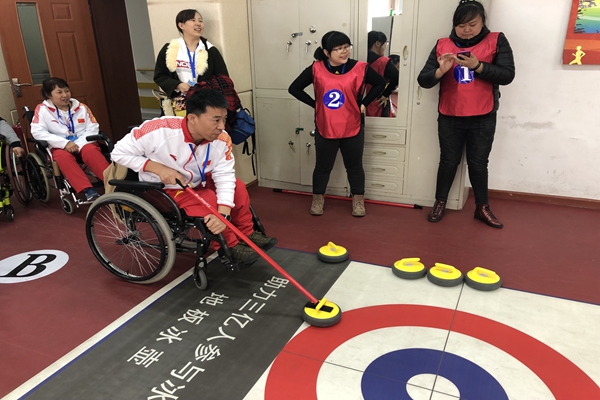 朝阳区残联组织旱地冰壶爱好者参加市残联比赛