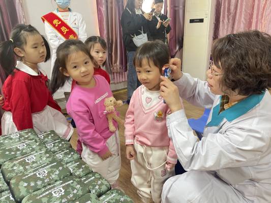 “雨水落到地面滴答滴答的声音、母亲在厨房忙碌的锅碗瓢盆“大合奏”、舞台上不绝如缕的维扬戏曲声……耳朵,是我们聆听世界的窗口,它让我们感受到动人的旋律,体会到了万物的美好。耳朵如此重要,但是你真的了解自己的耳朵吗?你知道该如何保护听力吗?”宋主任结合幼儿的身心发展特点及规律,运用视频、情境表演、游戏、故事等形式让幼儿体验耳朵的作用,并知道保护耳朵的简单方法和常识。提醒幼儿在日常的学习生活中养成良好的用耳习惯,如:不能把小的东西塞进耳朵,不用硬物挖耳朵,遇到雷声、燃放鞭炮声要张开嘴巴或捂住耳朵等。讲解过后,桂林社区卫生服务中心医生现场为孩子们检测听力。幼儿园园长表示,这次活动孩子们受益很多,“宋主任讲解非常生动细致,让孩子们了解到护耳知识。社区卫生服务中心医生们也非常有耐心的为孩子们检测听力,希望以后社区能多举办这样的活动。”